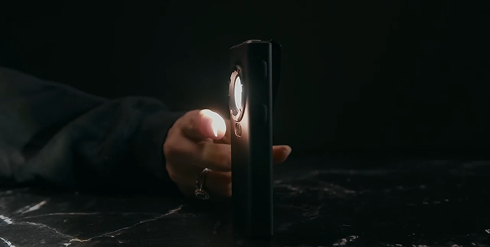 The flashlight uses a side button, which is easier for one-handed use and prevents accidental activation. It also has a smart pocket sensor that automatically turns the light off when placed in your pocket.