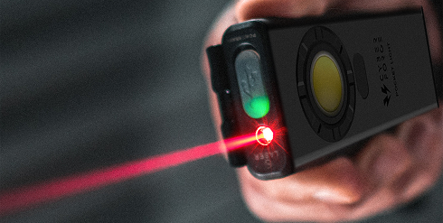 The 1,200-lumen beam is very bright, so avoid shining it directly into eyes. The laser should also never be pointed at eyes or reflective surfaces.