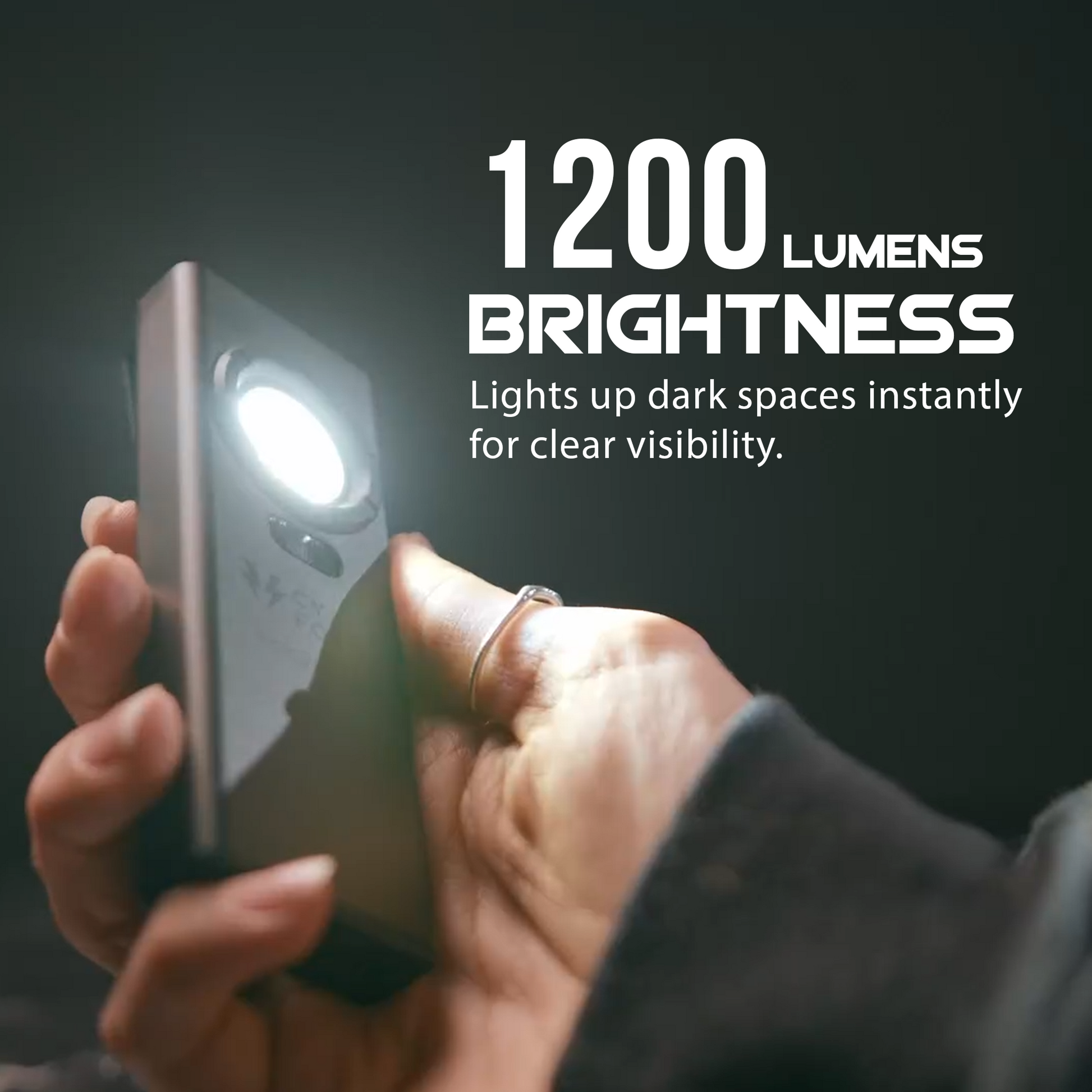 The Cyber Tools Pocket Flashlight pushes out 1,200 real lumens, bright enough to light up your entire garage, see clearly under a car hood, or spot objects over 100 feet away. It’s far brighter than a phone flashlight and punches way above its size.