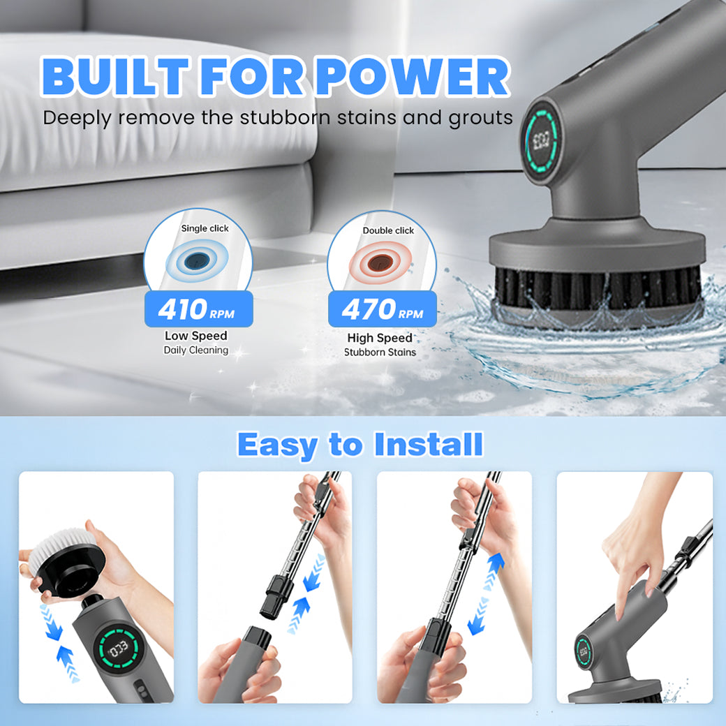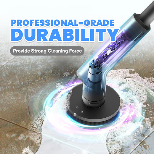 470 RPM high-torque motor cuts through grime, soap scum, and buildup faster and cleaner than hand scrubbing.
