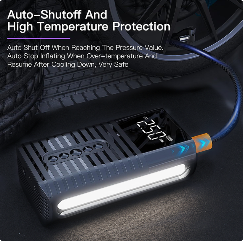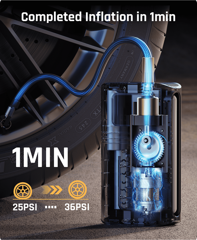Engineered for 150 PSI maximum pressure with lightning-fast 31.4 L/min airflow, the DP150 inflates a full car tire in just 6 minutes, giving you the power and precision to handle flat tires, quick top-ups, and emergency situations without breaking stride.