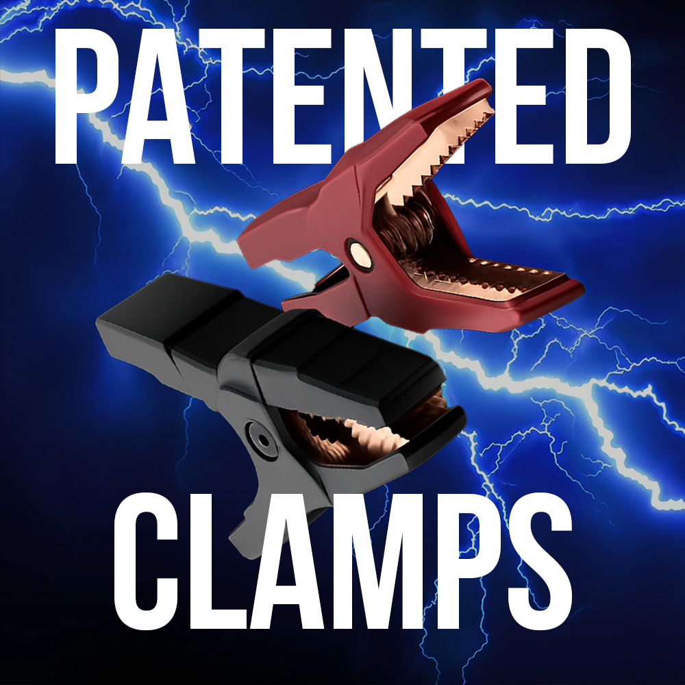 You shouldn't worry about sparks flying near your battery. Our patented clamps grip tight and connect safely every time — even if you've never done this before. No slipping. No sparking. No second-guessing.
