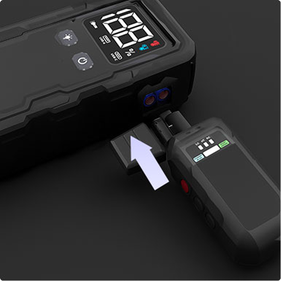 Firmly insert the smart jump cable into the jump starter’s output port. The indicator light will turn on, placing the device in standby mode.