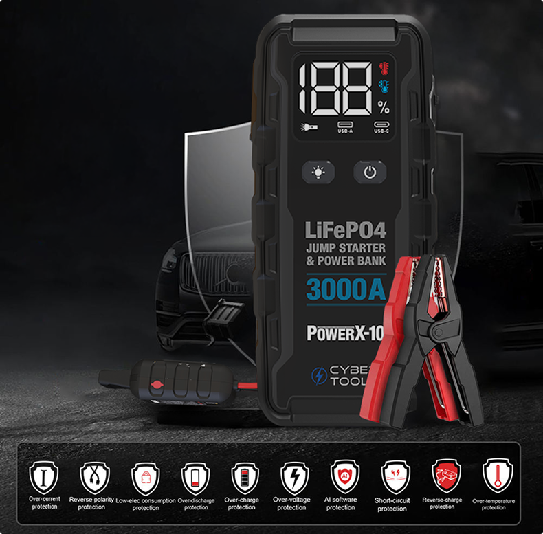The PowerX has 10 smart protections that keep every start spark-free, even if you connect it incorrectly. It won't spark or cause damage — the system simply won't activate until it's safe.