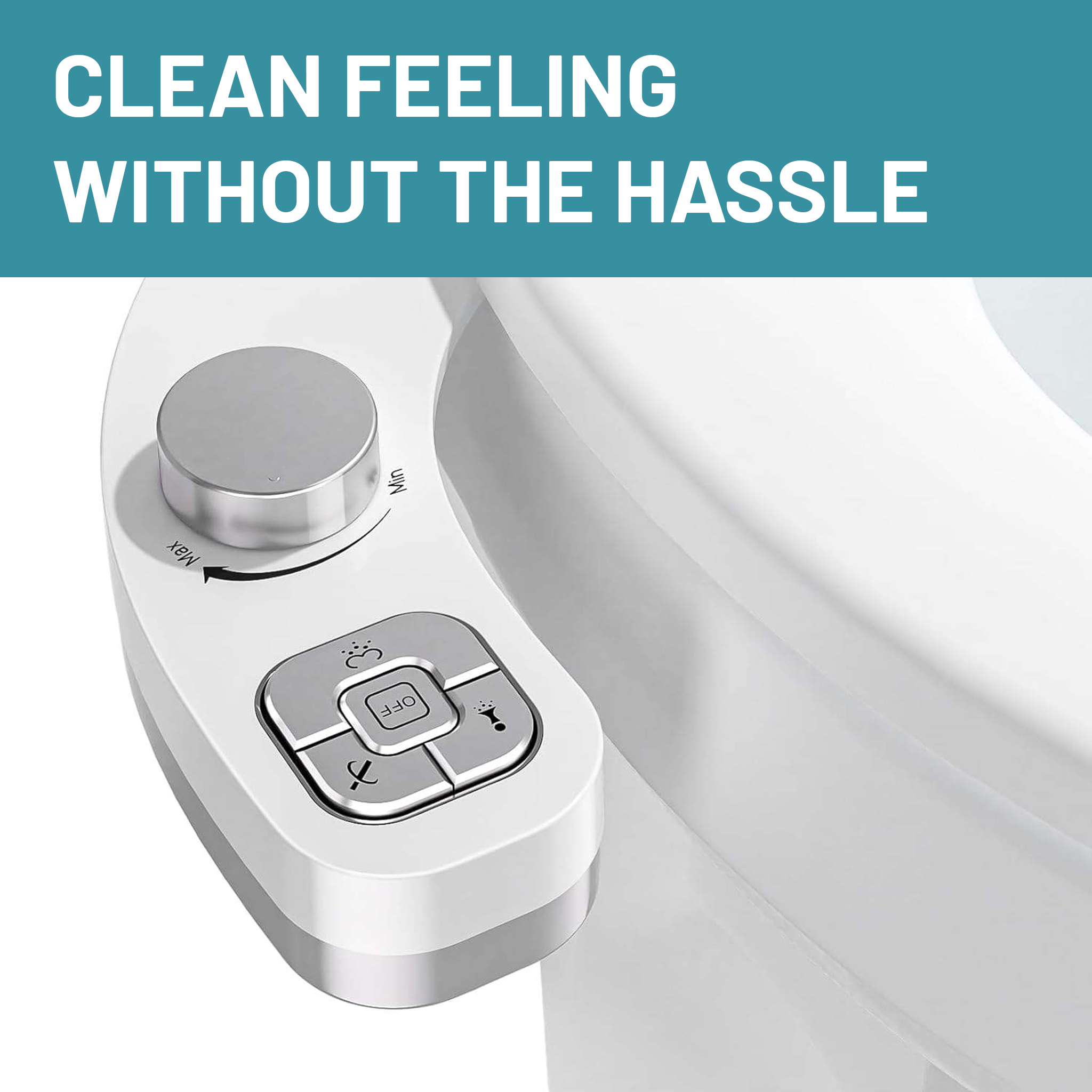 The ultra-thin body sits flat under your toilet seat without lifting or wobbling. It looks built-in, not bolted on — perfect for homes where neatness and cleanliness matter.