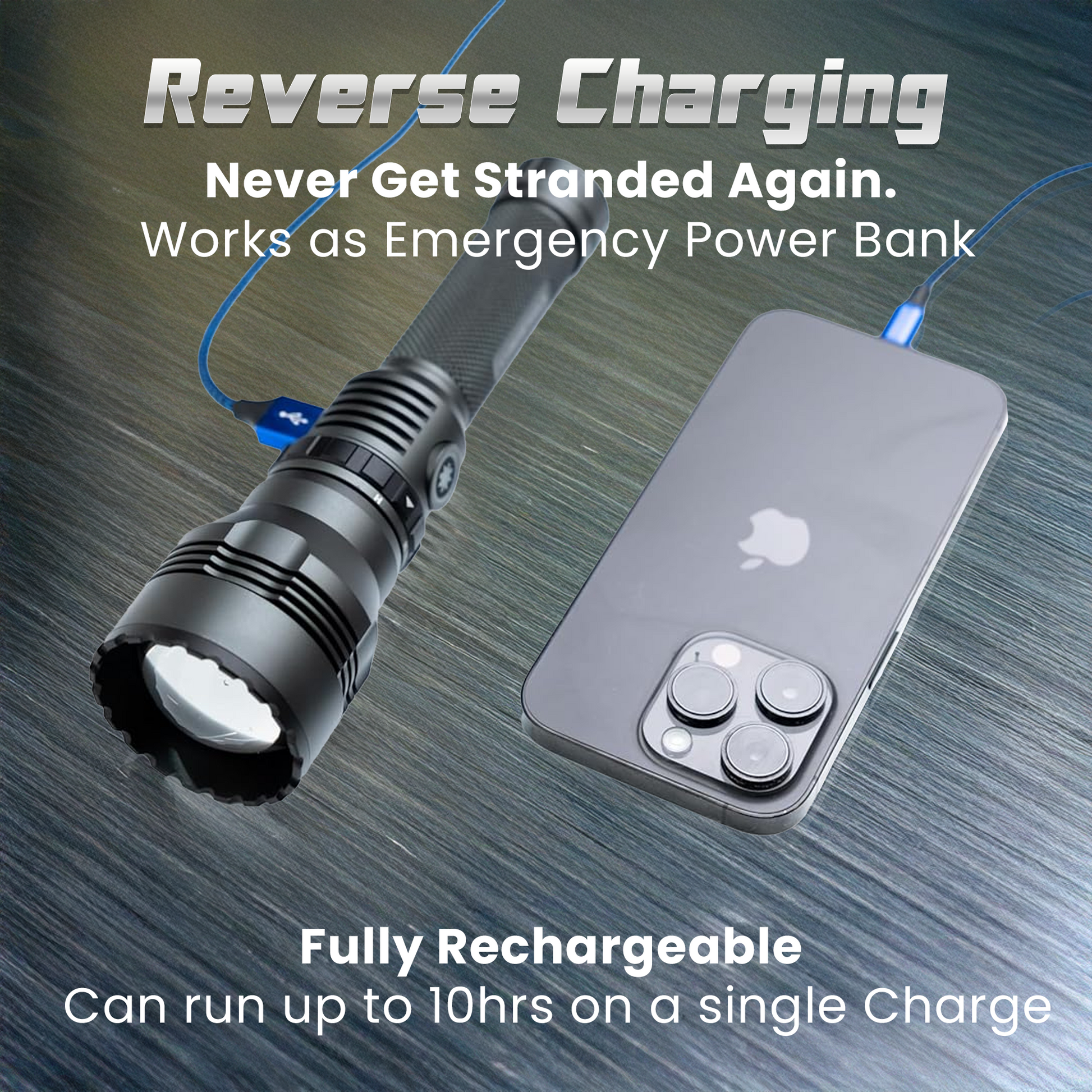 Smart Power Control lets the Survival Flashlight run up to 10 hours on a single charge. That’s enough to last an entire night of camping or an overnight shift without dying out. If the power goes out at home, this flashlight will shine through till morning, giving you consistent light when you need it most.