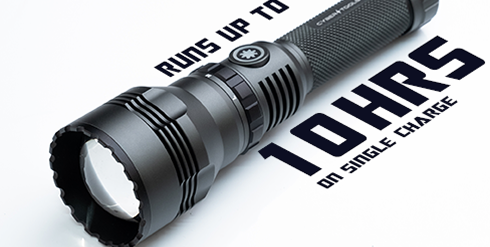 Smart Power Control lets the flashlight run up to 10 hours on one charge.