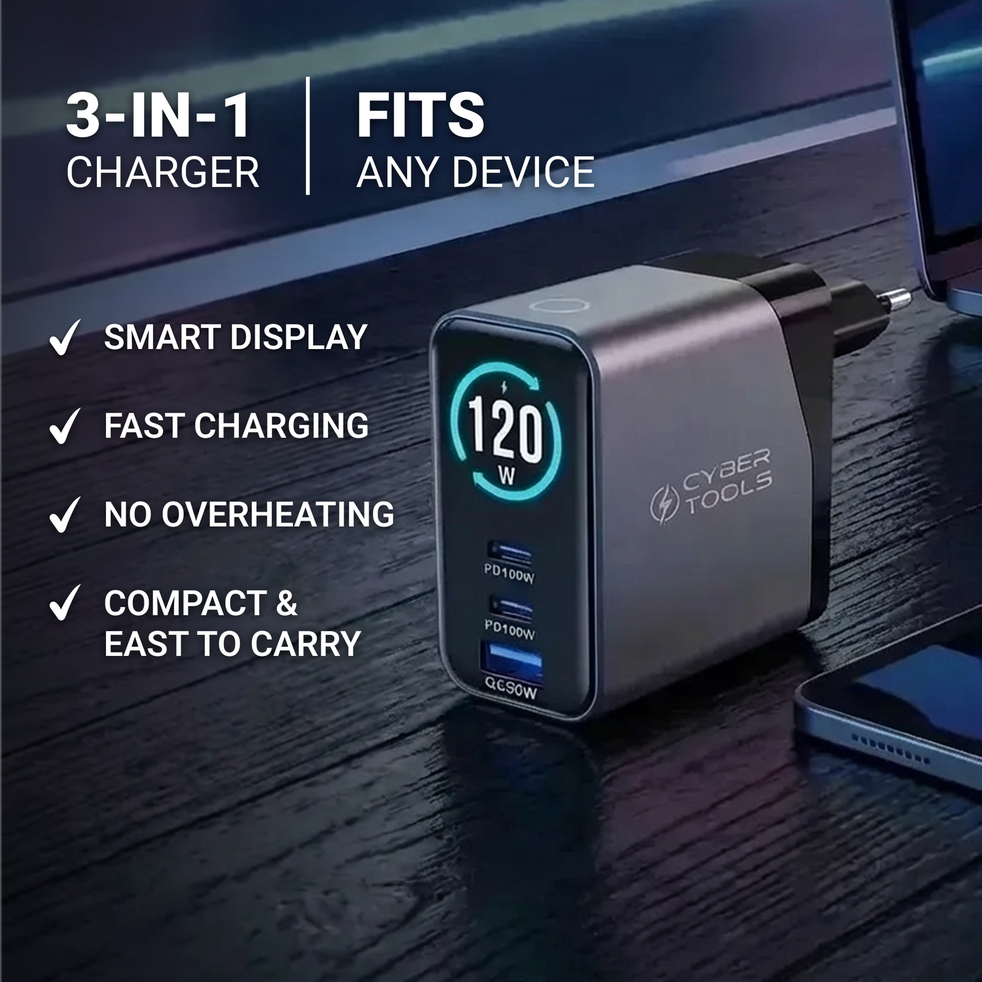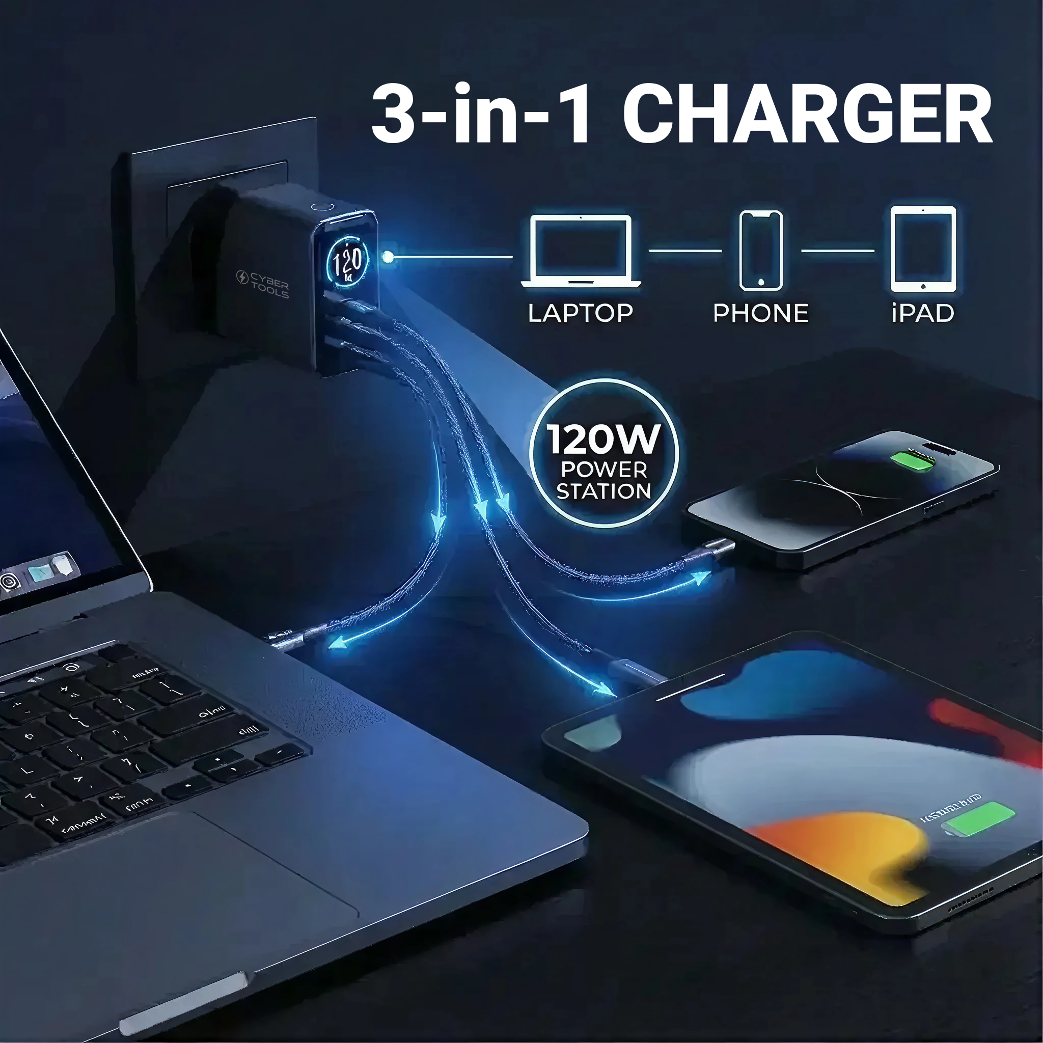 120W GaN Power. 3 Devices. One Pocket-Sized Charger.