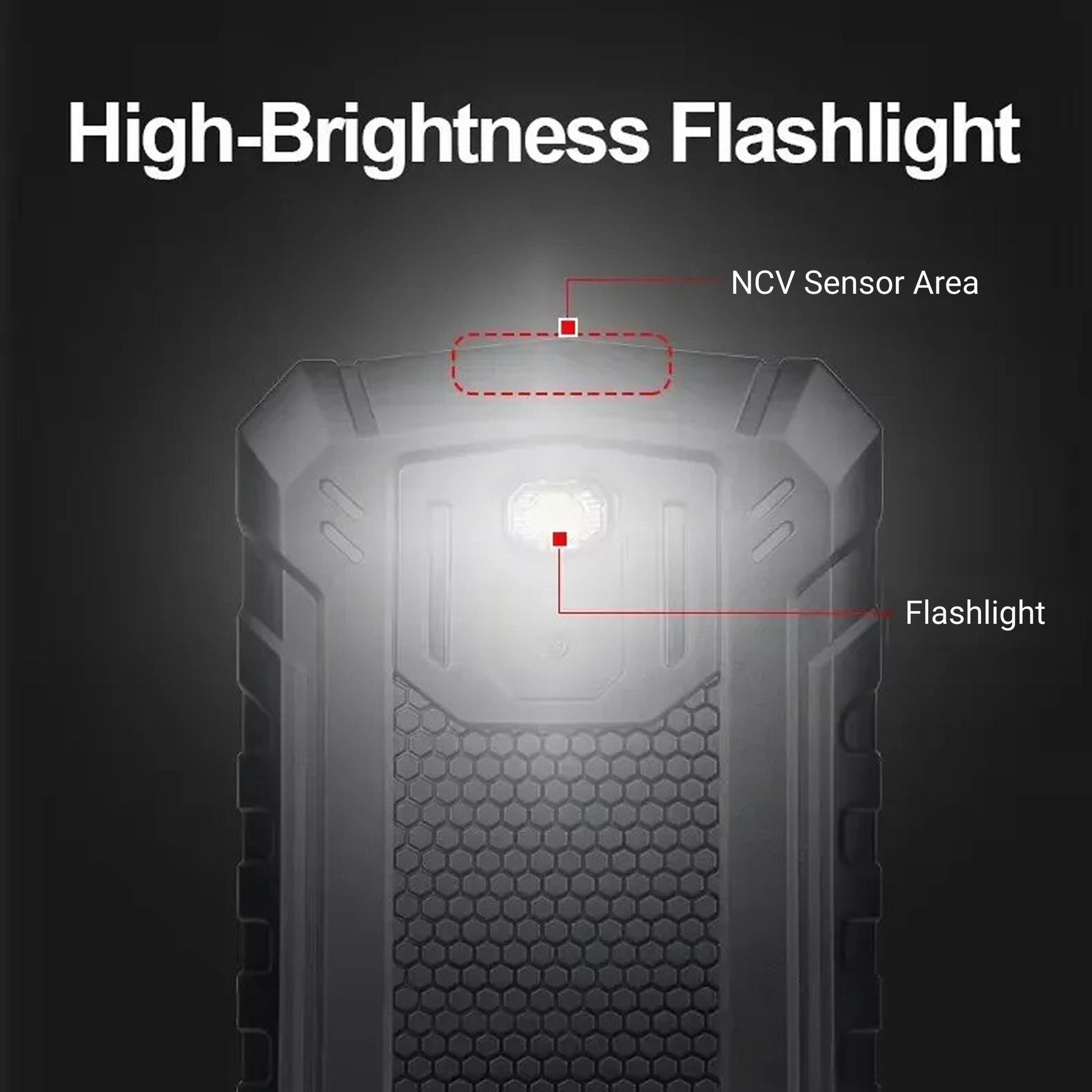 Bright VA LCD and onboard flashlight help you see clearly, even in crawlspaces or dark basements.
