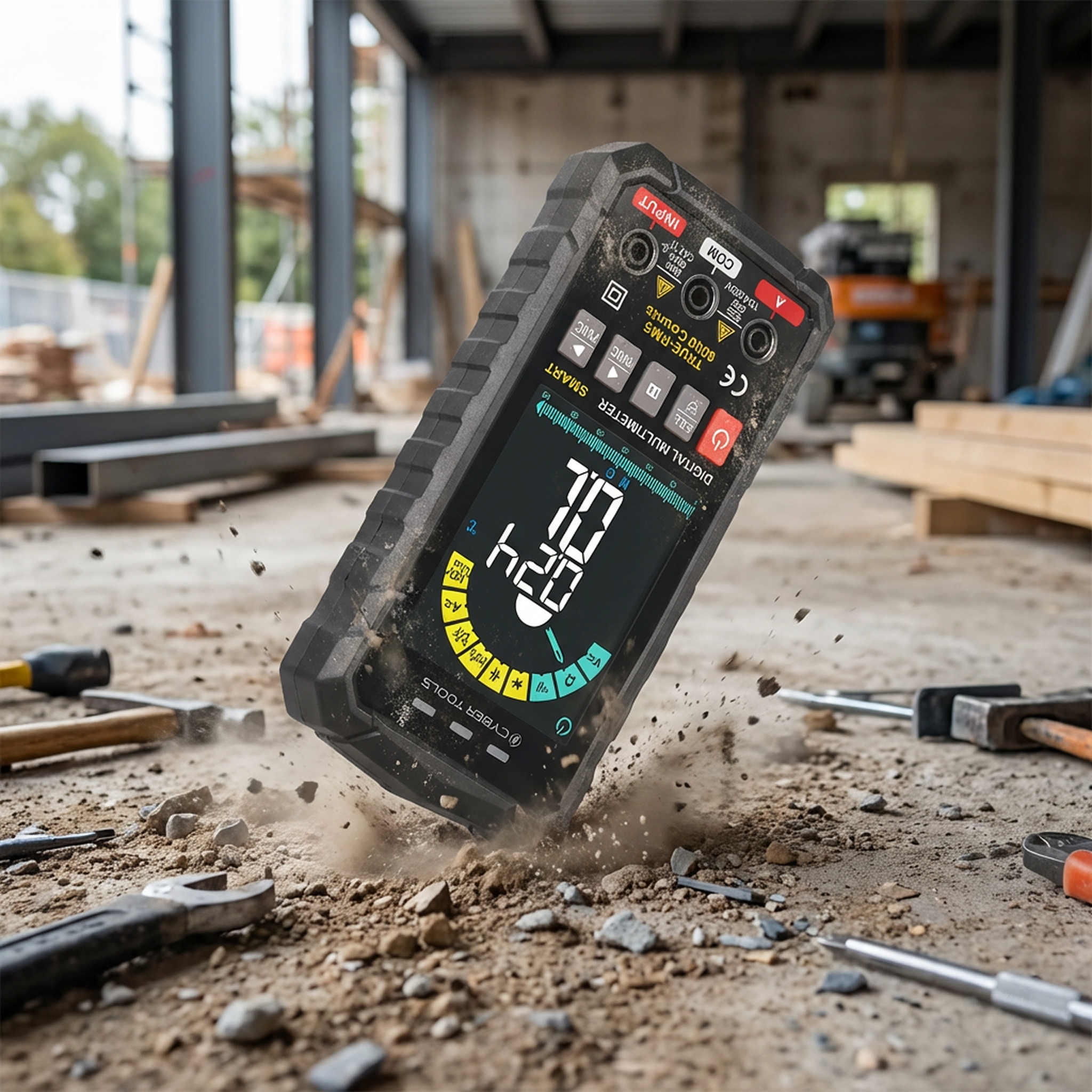 Rugged, impact-resistant multimeter housing withstands drops on the job site.